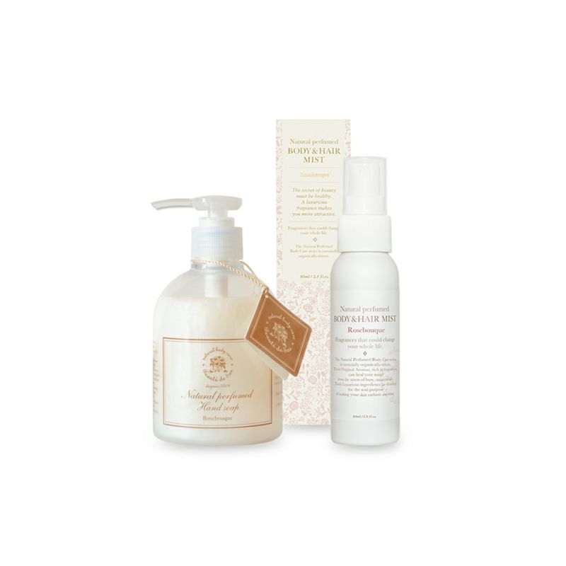 お返しギフトにおすすめ|ギフトセット【 I 】 豊かな泡立ちで優しく手肌を包み込む「ハンドソープ」と、トワレより軽くみずみずしい使用感の「フレグランスミスト」をセットに。ギフトボックスに詰めてお届けいたします。
